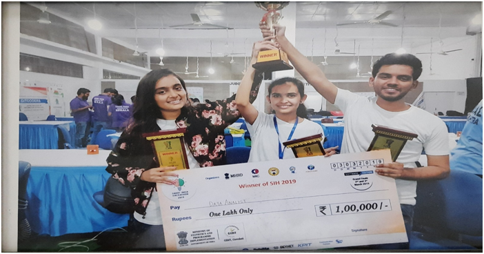 Jayna Tahnki, Pooja Ribadiy, Taslim Sama, Harsh Bakori, Arzaan Mogal, and Mohammad Nadib Hasan received a prize money of Rs. 1,00,000/- (1 Lakh) in “Smart India Hackathon – 2019” at The Girijananda Chowdhury Institute of Management and Technology (GIMT), Guwahati.